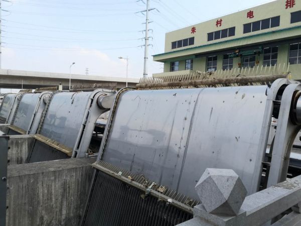 HQN  型回转式格栅清污机固定安装在泵 站、水电站、污水雨水排放处、自来水取水处 等水工建筑物的进水口处,以拦污栅拦截水流  中所挟带的污飘浮物(树枝、树叶、杂草、生  活垃圾等),并通过回转的齿耙将其